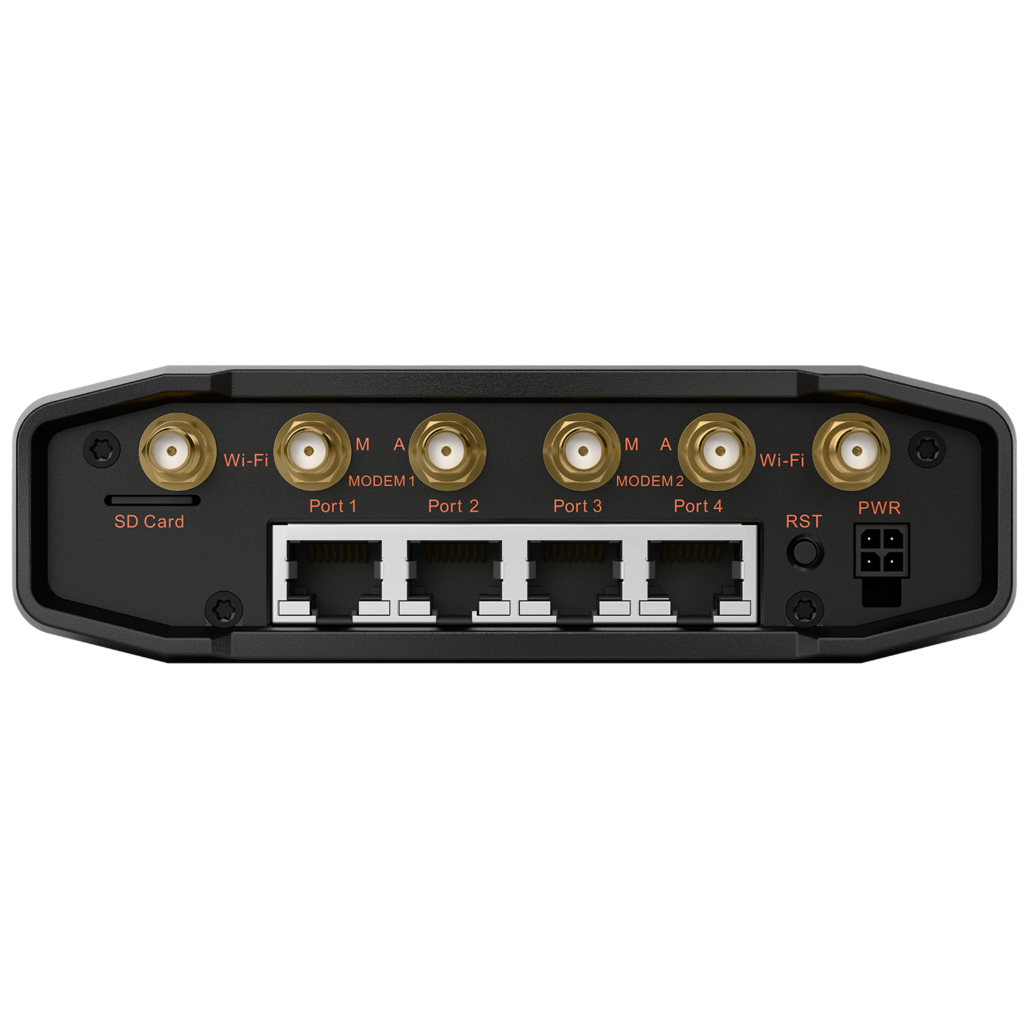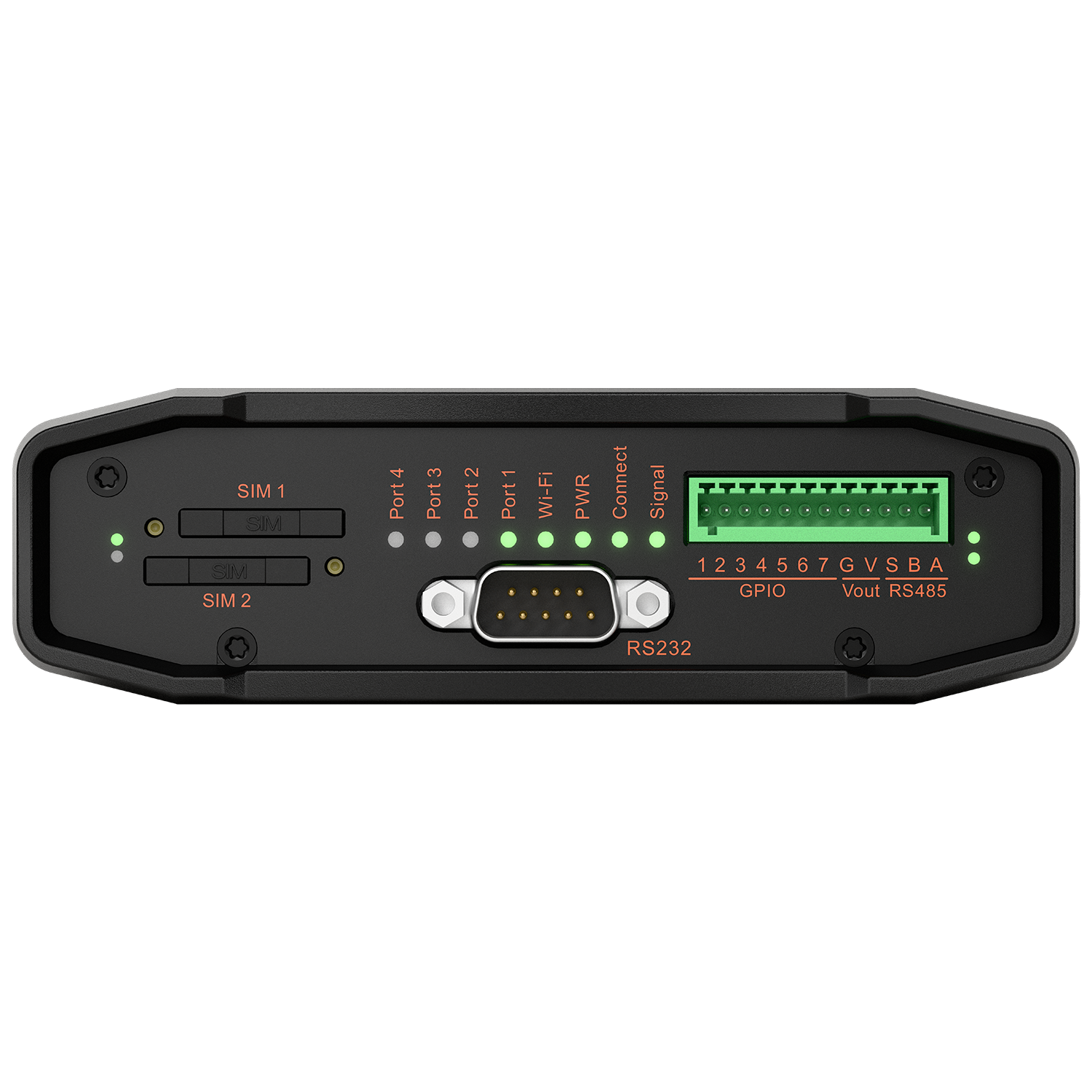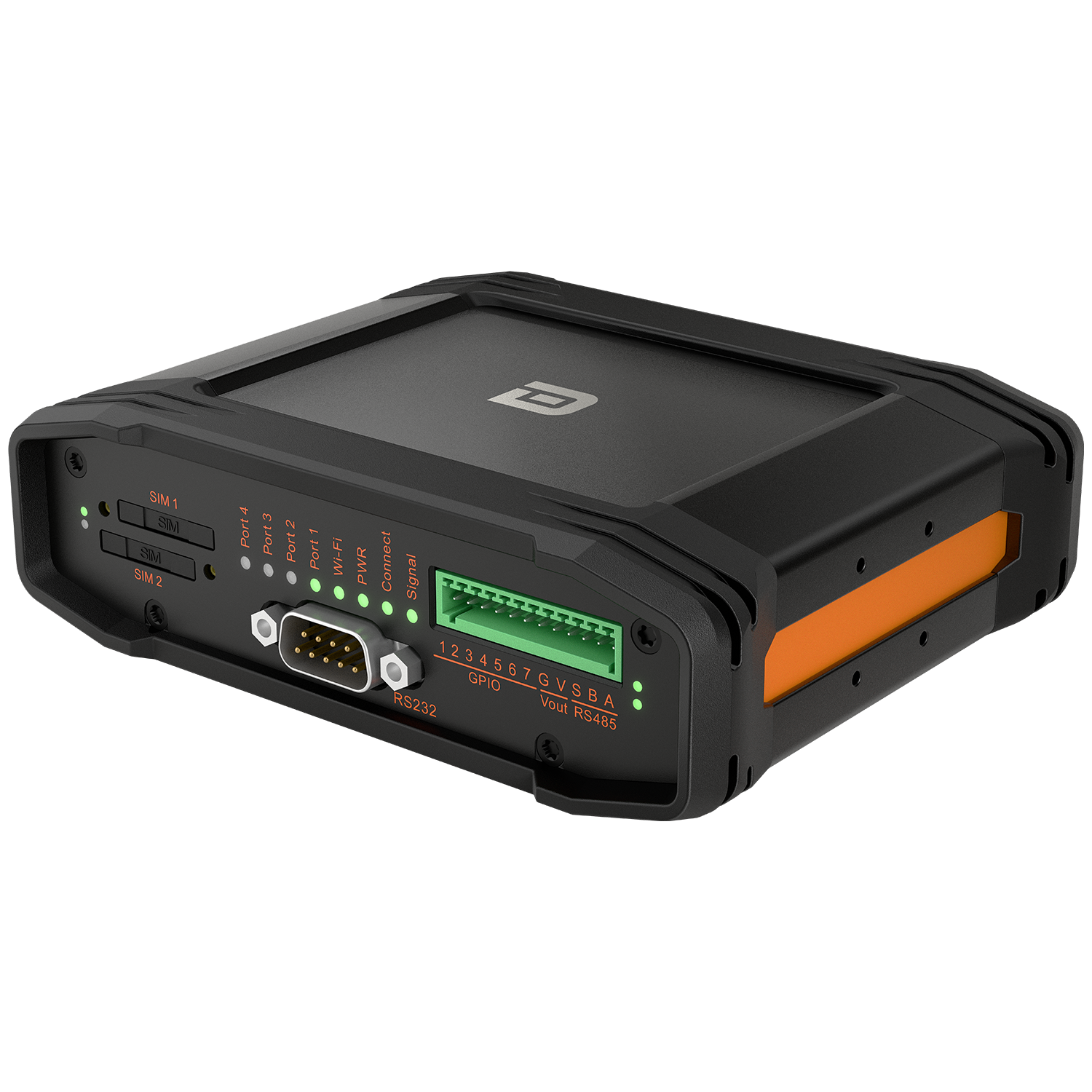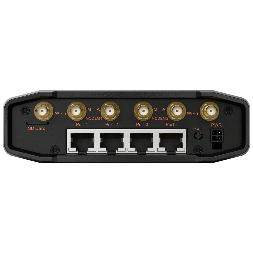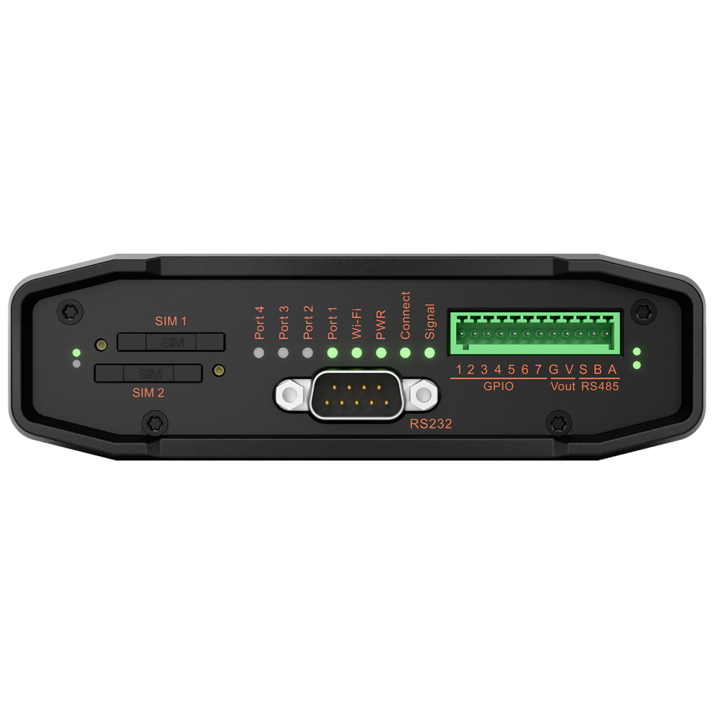 The router offers a comprehensive range of wired and wireless connectivity options. These include an integrated 802.11b/g/n Wi-Fi access point, four 10/100 Ethernet ports, RS-232 and RS-485 serial interfaces, and seven configurable GPIO pins offering maximum flexibility for integration with external devices.